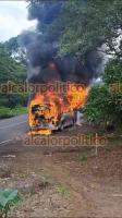 Unidad de la línea Transportes del Istmo fue envuelta por el fuego a un costado de la carretera Costera del Golfo