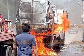 Una camioneta tipo van se incendió cuando era trasladada sobre una plataforma en el bulevar Córdoba-Fortín. De acuerdo con los reportes recabados, la unidad chocó el miércoles y era transportada a un taller mecánico. Durante el trayecto, el conductor de la plataforma se percató de que salían llamas desde la camioneta y solicitó apoyo.
