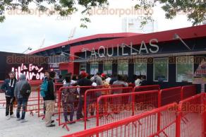 Taquillas casi desoladas en el inicio de la venta al público general para el partido entre Tiburones Rojos y América; pese a ello hubo varias quejas por la mecánica para la venta de una entrada, pues sólo se puede comprar un boleto y piden credencial de elector para boletinarla y que no puedas comprar otro.
