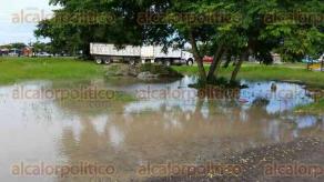 Un terreno ubicado entre los fraccionamientos Puente Moreno y Arboledas San Ramón quedó totalmente inundado por la fuga de agua que existe en la tubería que traslada el líquido de la planta potabilizadora de El Tejar hacia los municipios de Veracruz y Boca del Río.