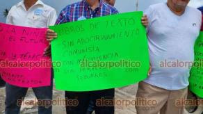 Integrantes del Comité Ciudadano de Coatzacoalcos marcharon este domingo en contra de los nuevos libros de texto gratuito.
