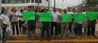 Con pancartas, solicitaban pago de prestaciones como primas de antigüedad de trabajadores que ya tienen su acuerdo con el Instituto de Pensiones del Estado (IPE), pago puntual de quincenas, así como, revisión de convenios.