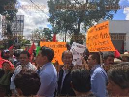 Integrantes del Movimiento Antorchista se manifestaron frente a las oficinas del Centro Administrativo Municipal, ubicado sobre la avenida Miguel Alemán, piden a la Comisión Municipal de Agua y Saneamiento (CMAS) que cumpla con un pliego petitorio entregado a inicios del presente año.