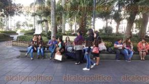 Alrededor de 10 viudas de policías caídos en el cumplimiento de su deber se manifestaron en el parque Juárez para exigir el depósito de su pensión trimestral, el depósito de las becas de sus hijos, el pago de seguro y la entrega de viviendas.