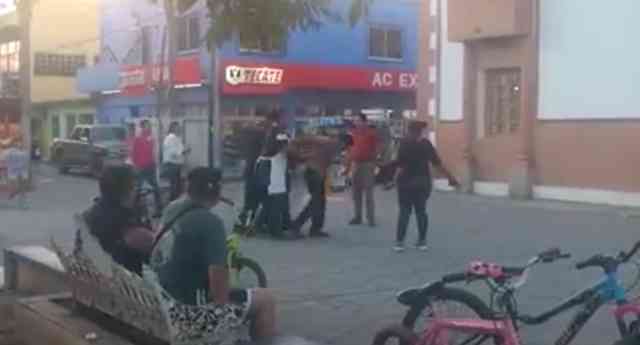 Tecolutla, Ver., 26 de marzo de 2019.- Por redes circuló el video de una pelea entre dos hombres ocurrida frente al Palacio Municipal. Los protagonistas, se informó, serían dos funcionarios del Ayuntamiento: el director de Comunicación Social Luis Alberto Maldonado y el Oficial Mayor, Gerardo Morales Alarcón, desconociéndose la causa del pleito.