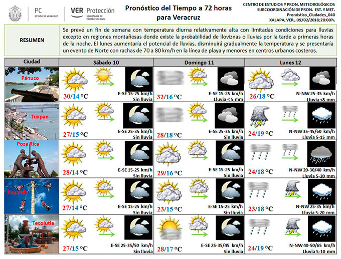 Se prevé un fin de semana con temperatura diurna relativamente alta con limitadas condiciones para lluvias, excepto en regiones montañosas