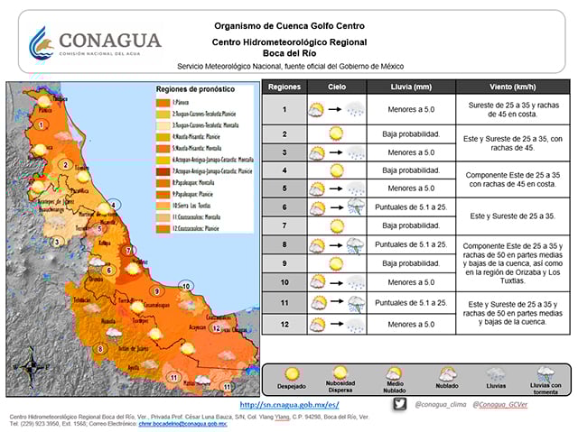 Atienda las indicaciones que emitan las Secretarías de Protección Civil Estatales y Capitanía de Puertos. Manténgase informado de las actualizaciones del pronóstico del tiempo.