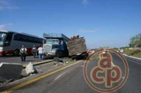 Los hechos ocurrieron en una curva, antes de llegar al puente de La Antigua, cuando el operador de la unidad perdió el control, golpeando contra el muro de contención y la valla metálica.