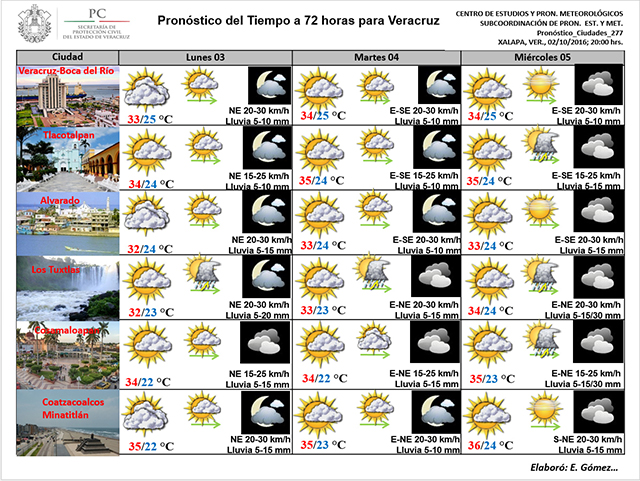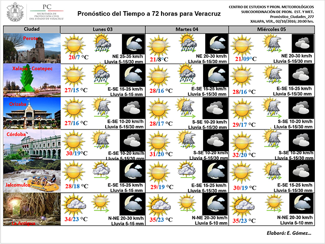Se registrará temperatura diurna alta, con posibles tormentas aisladas por las tardes en montaña, así como lluvias dispersas por las noches y mañanas en costa