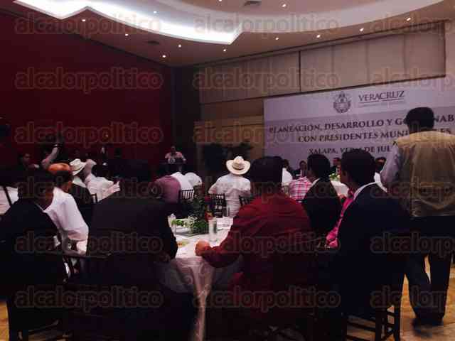 Xalapa, Ver., 1 de julio de 2015.- Luego de atender las demandas de los pobladores de Soledad Atzompa, el gobernador Javier Duarte de Ochoa se trasladó a esta capital, donde Alcaldes de gran parte del Estado lo esperaron para sostener una reunión en el salón Ghal.