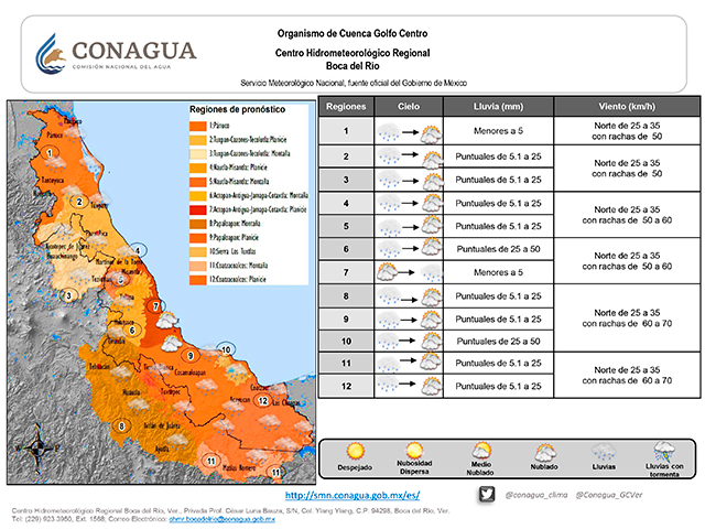 El frente número 44 continúa estacionado sobre el sur y suroestes del Golfo de México y otro sector sobre territorio nacional. Se espera se mueva lentamente hacia la Península de Yucatán, dejando una vaguada sobre el noroeste del Golfo de México. Por su parte el núcleo de la masa de aire frío se desplazará hacia la costa oriental de los Estados Unidos. Por lo anterior, se desactiva la Alerta Gris y se emite Aviso Especial con la finalidad de continuar con las precauciones por: