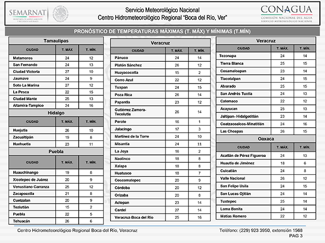 Tome precauciones por temperaturas frías en regiones montañosas. Atienda las indicaciones de Protección Civil. Manténgase atento de las actualizaciones del pronóstico meteorológico.