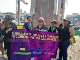 Las mujeres participantes se plantaron en los cruceros del bulevar Ruiz Cortines, aprovechando el cambio de luces, para manifestar su rechazo.