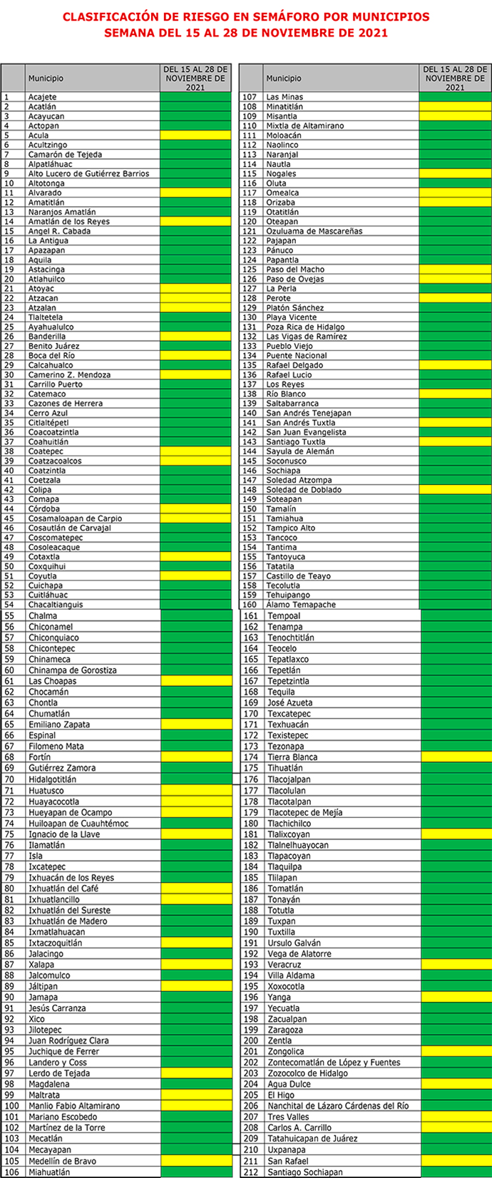 Debido a que continúa el descenso en casos de COVID, Veracruz seguirá otra quincena en el color verde del semáforo epidemiológico de la Secretaría de Salud del Gobierno federal.