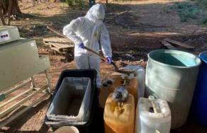 Durante recorridos de vigilancia en inmediaciones de la localidad de La Estancia de los García, el personal naval localizó citado laboratorio con dimensiones de aproximadamente 3 mil metros cuadrados, en el que se aseguraron 800 litros de precursores químicos, accesorios y herramientas de trabajo, reactores de acero inoxidable, destiladores, ollas, tinas, tambos, tanques de gas LP, báscula gramera, bidones con capacidad de 50 litros, pinzas de presión, pala, quemadores, batidora industrial, bomba de agua sumergible, carretilla, presuntamente empleados para la elaboración de drogas sintéticas.