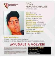 El joven Raúl Huar Morales, conocido como “El Cachi”, desapareció también en Nogales, en donde fue visto por última vez el 26 de mayo pasado.