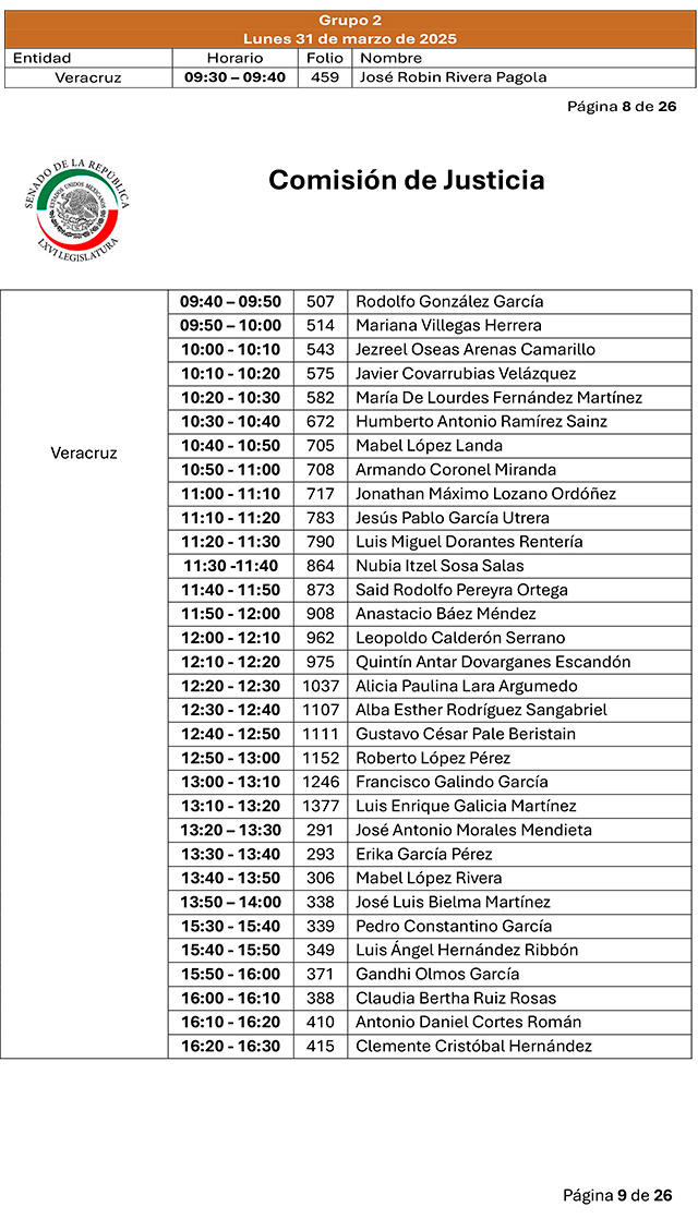 Por instrucción del presidente de la Comisión de Justicia, senador Javier Corral Jurado, se publicará en la Gaceta del Senado y en el micrositio de la comisión el listado actualizado de las personas aspirantes.