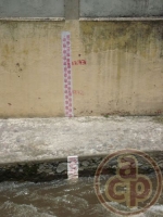 Tal trazo incomprensible, así se observan la señalización que hizo la Comisión de Aguas del Estado de Veracruz (CAEV) en el río Orizaba, para poder determinar el nivel de este. Para empezar no se usan los colores establecidos para la prevención en los niveles de los afluentes; sólo se pintó una línea blanca con diversas rayas rojas, que a simple vista no dice nada, expresó el coordinador de Protección Civil municipal, Mario Flores Camacho.