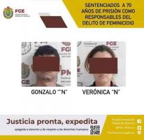 Verónica “N” y Gonzalo “N” fueron sentenciados a 70 años de prisión por el delito de feminicidio de Rosa Isela, una joven de 20 años quien se encontraba embarazada.
