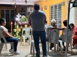 En el garaje de una vivienda prestada fueron velados desde la noche del lunes, los restos de doña Elodia Reyes Azuara, la adulta mayor que junto a su esposo Hilario Reynosa sobrevivieron a la inundación del río Cazones en Poza Rica.