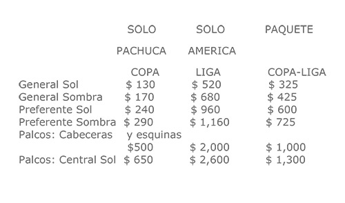 La directiva dio también a conocer que quienes adquieran un boleto para el partido del Pachuca, tendrán un plus de adquirir el boleto del América un poco más barato pues la localidad tendrá un incremento por arriba del normal por la importancia de este partido, pues el actual campeón llena cualquier plaza cuando juega como visitante.