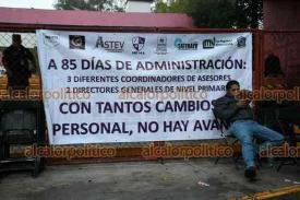 Como parte de la política “Maestro al Aula”, personal de Recursos Humanos de la Secretaría de Educación de Veracruz (SEV), acompañado por el titular de la Notaría Pública 32, Francisco Joaquín Naredo Galindo, presentó exhortos a los líderes sindicales que se movilizaron para cerrar las instalaciones de la dependencia este lunes.