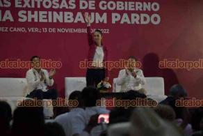“Me siento muy orgullosa de estar con los pilares de la transformación aquí en Veracruz. Queremos mucho al gobernador Cuitláhuac”, dijo Sheinbaum ya en el podio.