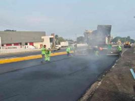 Las cuadrillas del Centro SICT Veracruz llevan a cabo obras de fresado de la superficie de rodamiento (retiro de la capa dañada para nivelar el área); bacheo superficial; y carpeta asfáltica de granulometría densa (colocación de nuevo pavimento de alta calidad para mayor durabilidad).