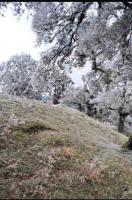 Con la llegada del Frente Frío 32, la sierra de Tlacolulan amaneció nuevamente cubierta de blanco debido a la presencia de cencellada, un fenómeno típico de la temporada invernal que transforma de manera notable el paisaje de esta región montañosa.