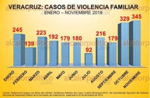 En noviembre pasado, la Fiscalía General del Estado (FGE) inició 345 carpetas de investigación por violencia intrafamiliar en el Estado de Veracruz, la cifra más alta de los primeros 11 meses del 2019, que por otra parte, de acuerdo a la Secretaría de Salud del Gobierno Federal, generaron 4 mil 457 “accidentados”, de los cuales nueve de cada diez son mujeres.
