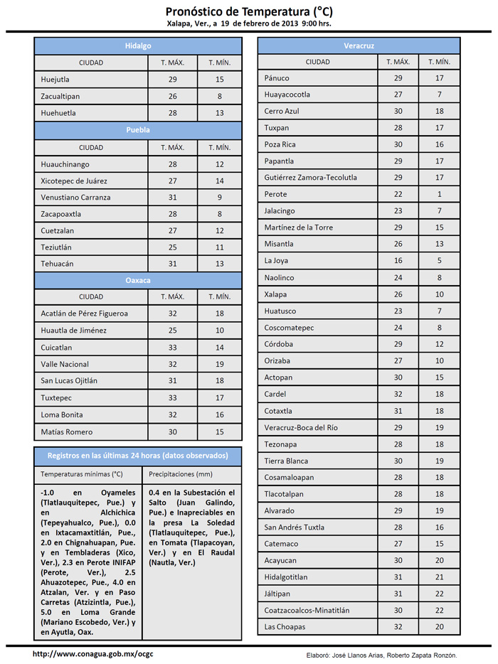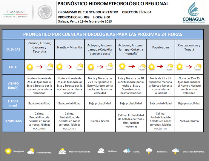 PRONÓSTICO: DE 9:00 HORAS DEL 19/FEB/2013 A 9:00 HORAS DEL 20/FEB/2013