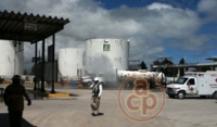 El simulacro inició poco después de las 11 de la mañana con los gritos de los trabajadores ¡fuego, fuego! De manera inmediata se activó la alarma y comenzaron a enfriar con agua una de las pipas estacionadas, donde supuestamente había iniciado el incendio.