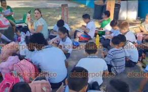 “No son condiciones para que los niños tomen sus clases”, publicaron a través de redes sociales acompañado de un video donde se muestra a los estudiantes en el patio del plantel y sentados en el piso.