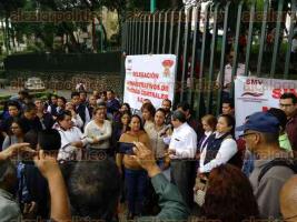 Agremiados al Sindicato Magisterial Veracruzano se manifestaron en la clínica 11 del IMMS; denunciaron falta de medicamentos y pésima atención por parte de médicos y enfermeros de la institución médica