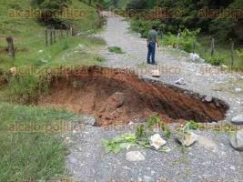 Un socavón en el camino al poblado de Atiopa, municipio de Texhuacan, dejó parcialmente incomunicados a 200 habitantes de esta región montañosa.