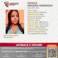 Familiares de la adolescente Camila Aranda Mendoza solicitan el apoyo urgente de la ciudadanía y de las autoridades de los tres niveles de gobierno para dar con su paradero, luego de que se reportara su desaparición.