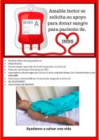 Se requiere donación de sangre tipo "O positivo" (o la que esté a su alcance) para la paciente María Julia Arauz Basurto.