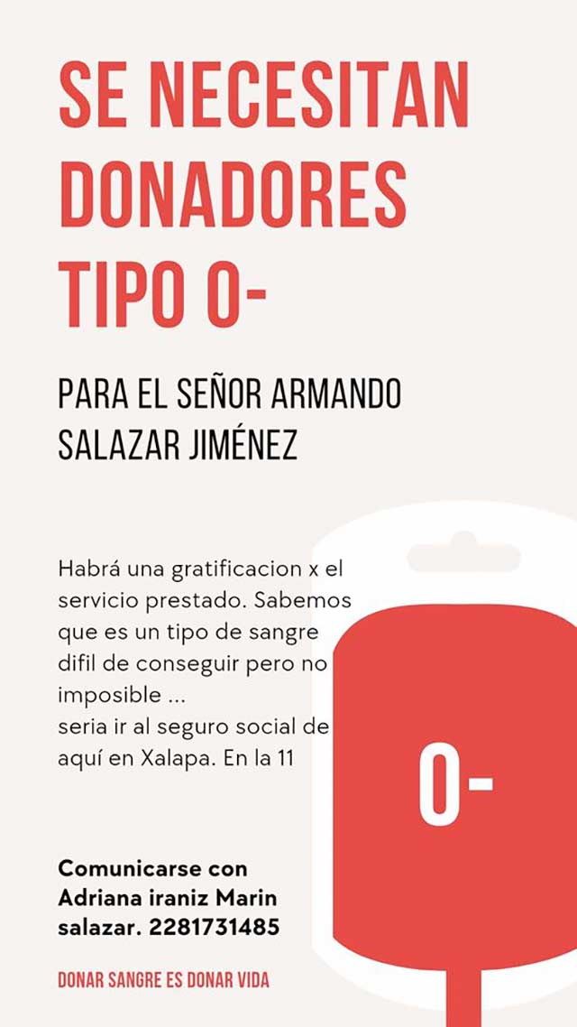 Solicitan donadores de sangre tipo O- en la clínica 11 del Seguro Social, en Xalapa
