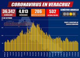 Entre tanto, los casos positivos ascienden 36 mil 342, 96 nuevos casos, residentes en diferentes localidades ahora de 206 municipios; de los cuales, 532 representan a los pacientes que cursan con la enfermedad activa, y por lo tanto pueden infectar a otras personas.
