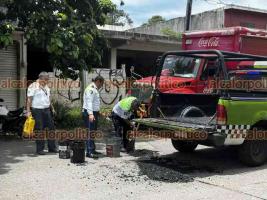 Sorprendidos peatones y automovilistas en Cardel, al observar a pleno sol como elementos de Tránsito del Estado con sede en esta ciudad, estuvieron tapando baches en calles y avenidas de la zona centro de la cabecera municipal de La Antigua.