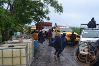 Al paso de las grúas con las camionetas, la gente salió a ver de qué se trataba y se metían corriendo para avisar de lo que estaban viendo.