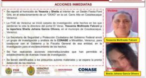 El Veraz, Yesenia Mollinedo Falconi y la reportera gráfica, Sheila Johana García Olivera, ocurrido el lunes en Cosoleacaque y que la línea de investigación más sólida tiene que ver con delincuencia organizada.