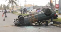 En la avenida Díaz Mirón, a la altura de la colonia Vista Alegre, de Boca del Río, el conductor de un auto tipo Neón, sufrió un infarto al volante, perdiendo el control, brincando el camellón central y chocando de frente contra un coche Tsuru II, quedando volcado el carro responsable. Una camioneta que estaba estacionada resultó con daños y tres personas lesionadas.