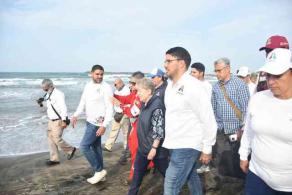 Acompañada por el alcalde Beto Cobos Márquez, la secretaria del Medio Ambiente y Recursos Naturales (SEMARNAT) del Gobierno federal, Alicia Bárcena Ibarra, visitó las playas de La Trocha y La Cava para supervisar las brigadas de limpieza.