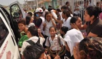 Los Bomberos Municipales de la Base Norte, de la Policía Naval y de la Cruz Roja, abordo de sus unidades, realizaron el traslado de los menores que se sentían mal.