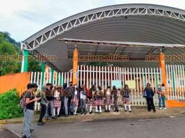 Debido a la falta de un docente, padres de familia tomaron el telebachillerato de la localidad de Dos Ríos, municipio de Atzacan, este jueves.