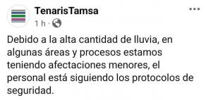 La empresa generadora de tubos de acero para la industria energética, minutos después de los videos, en su cuenta oficial, minimizó las afectaciones.
