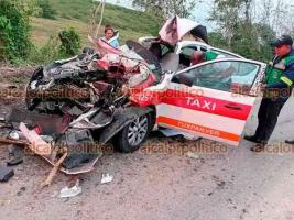 Tres personas resultaron lesionadas tras un accidente registrado la mañana de este miércoles en la carretera federal Tuxpan-Tamiahua, luego de la colisión frontal entre un taxi y un tractor agrícola.