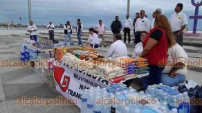 Taxistas de la zona conurbada Veracruz -Boca del Río instalaron un centro de acopio de víveres en el asta del bulevar Manuel Ávila Camacho para apoyar a las familias de sus colegas operadores del transporte público de Acapulco, Guerrero, que resultaron afectados por el paso del huracán Otis.
