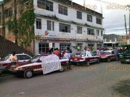 Taxistas que se desprendieron de la organización Unión de Comuneros y Ejidatarios del Norte (UCEN) en Tantoyuca, bajo el liderazgo de Quintín Mendoza Nicolás, a quienes les es impedido el paso para que cumplan con su desempeño como prestadores del servicio de transporte público; son 30 socios que reclaman la intervención del Gobierno Estatal para retirarle poder a su exdirigente.